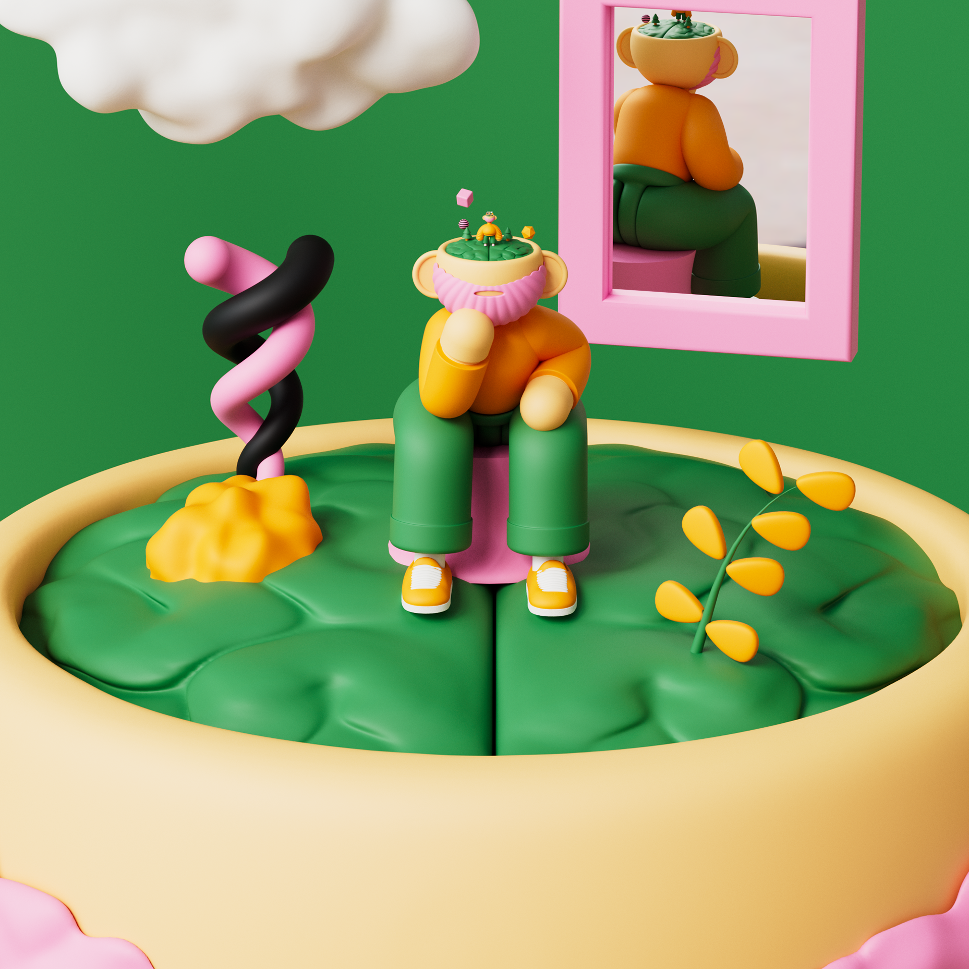 I was invited by the good people at Verdant brewery to collaborate with them in creating the illustration for this year’s flagship Double IPA craft ale. It was an extremely fun project the took my an a journey of exploration into the surreal. The project tag line was Be Weird and it was to be a celebration of how weird and different we all are, that this is a good thing. I landed on the concept that of looking into the head of the main character and finding 3 different states, contemplation, projection and finally Weird! Enjoy
